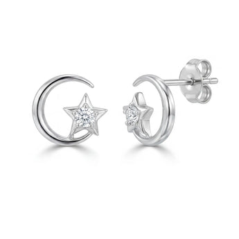 Aloha Sparkling Star Moon Earrings (Silver)