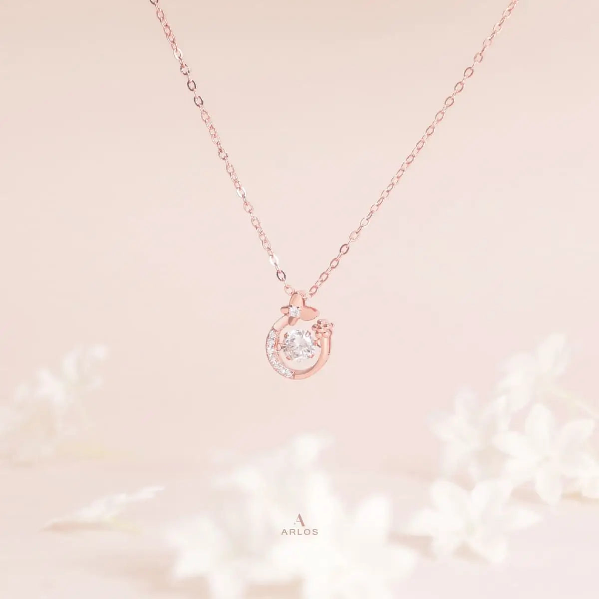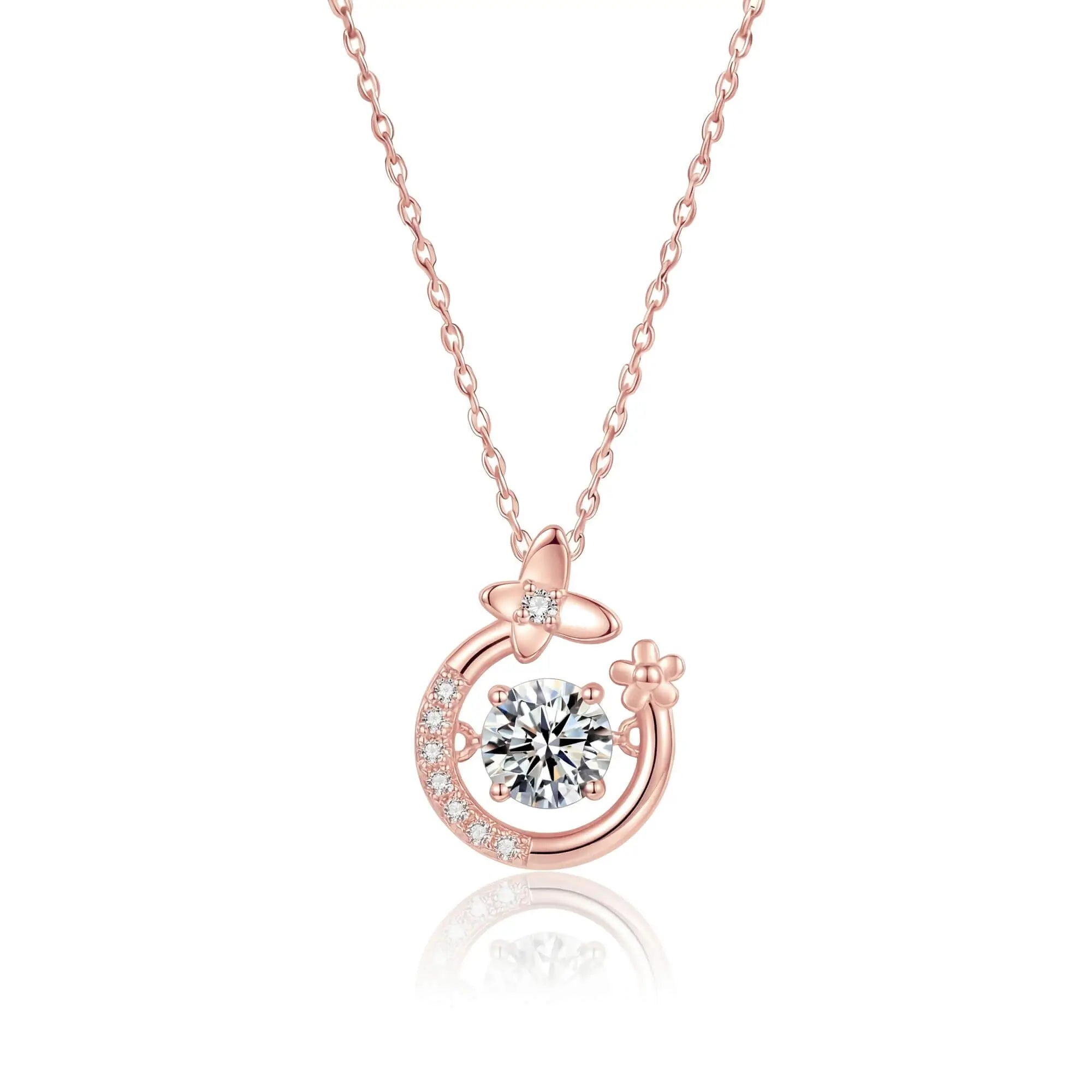 Floral Butterfly Dancing Stone Necklace (Rose Gold)