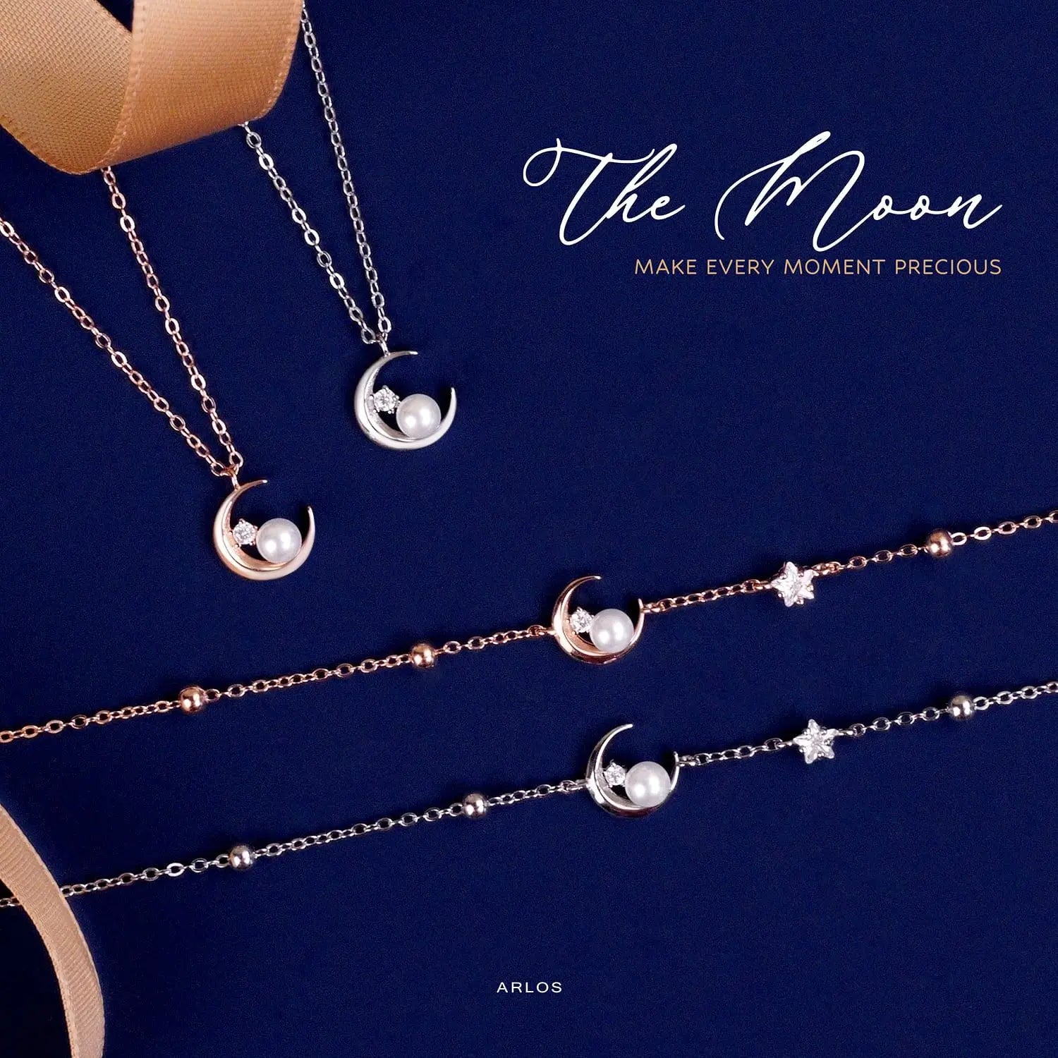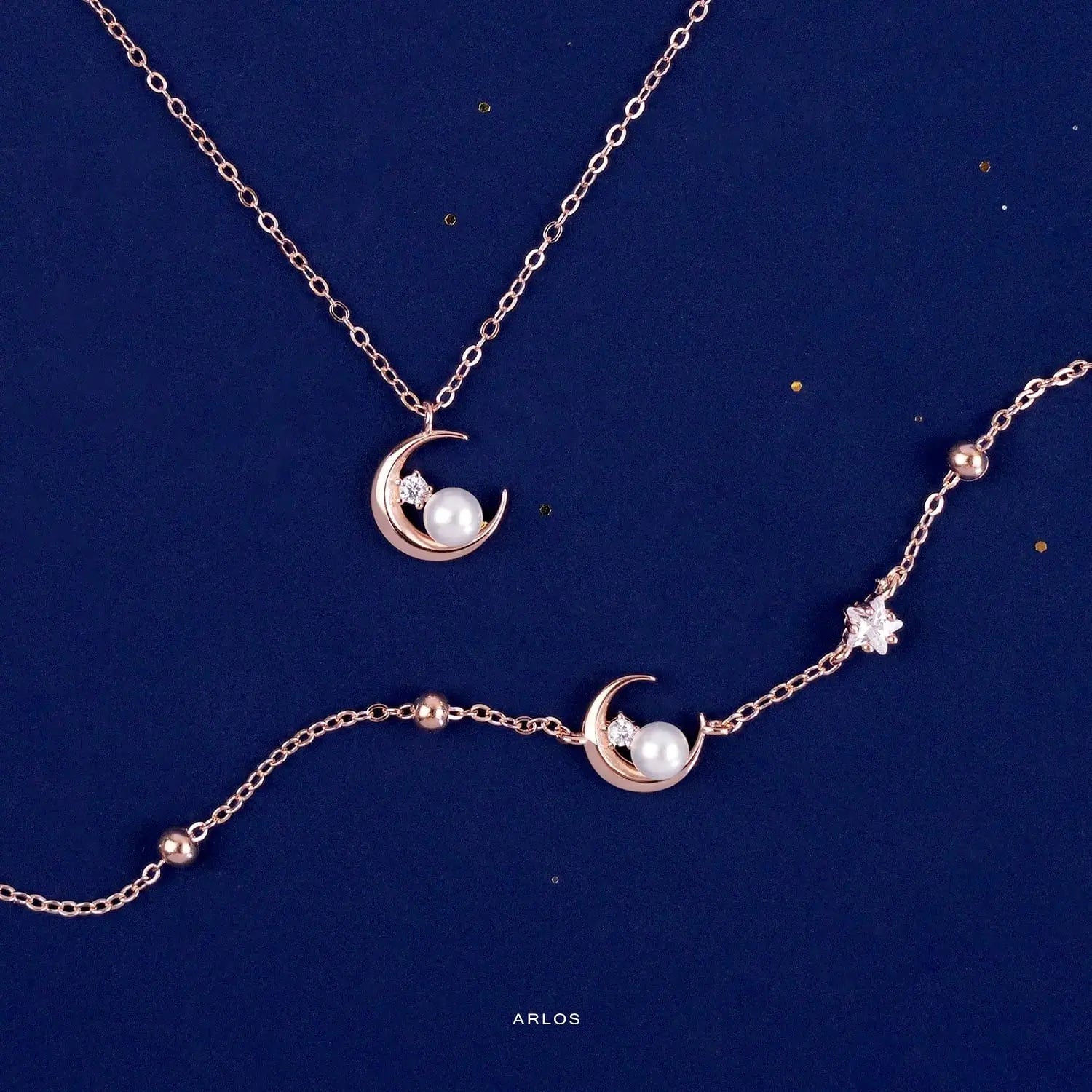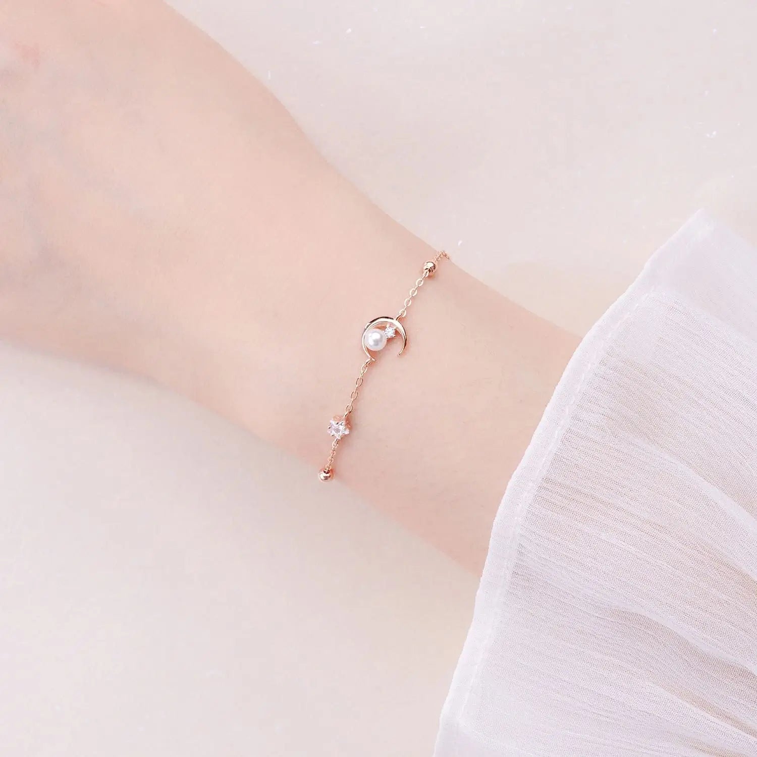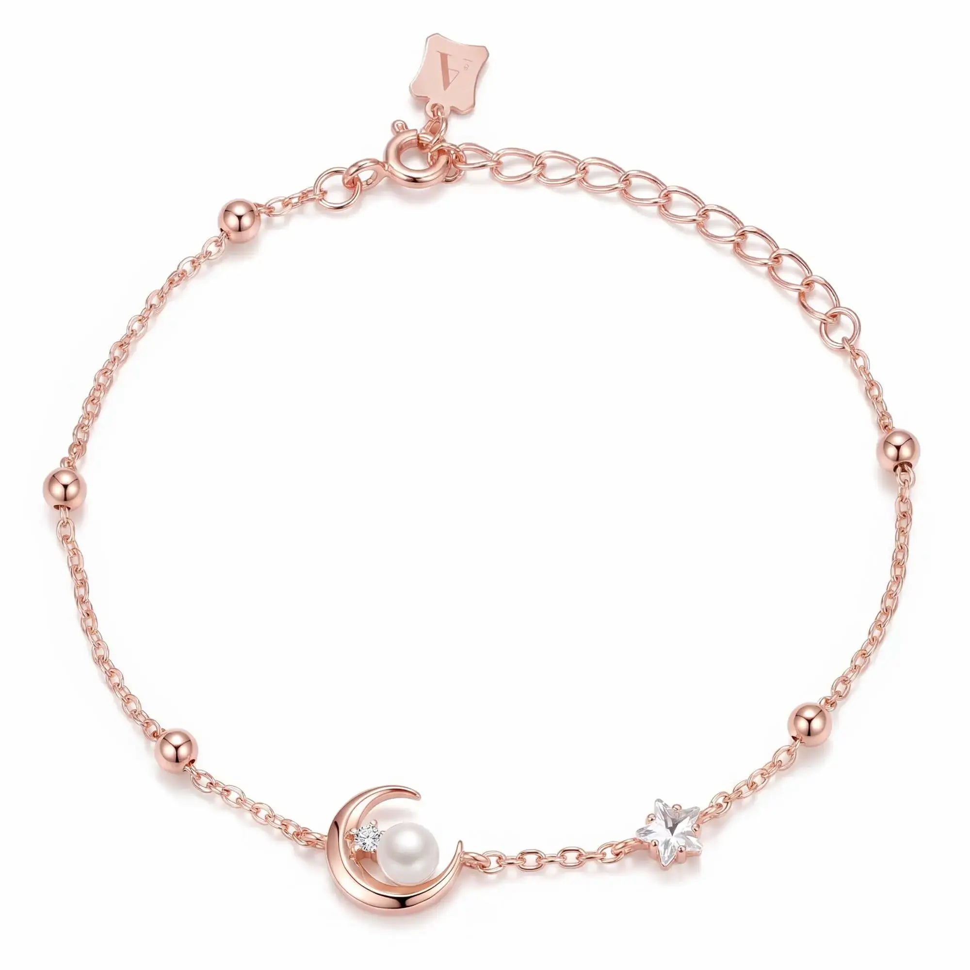L'amour Moon Star Pearl Bracelet (Rose Gold)