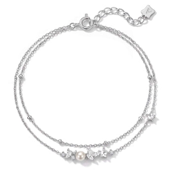 L'amour 星星珍珠手链 (白金色)