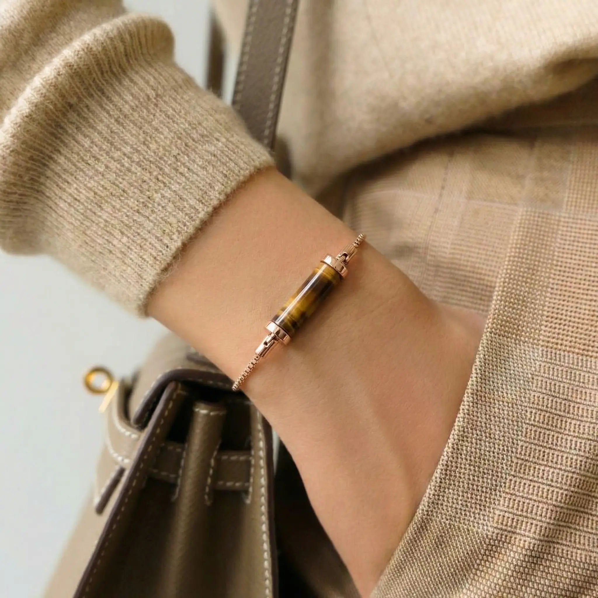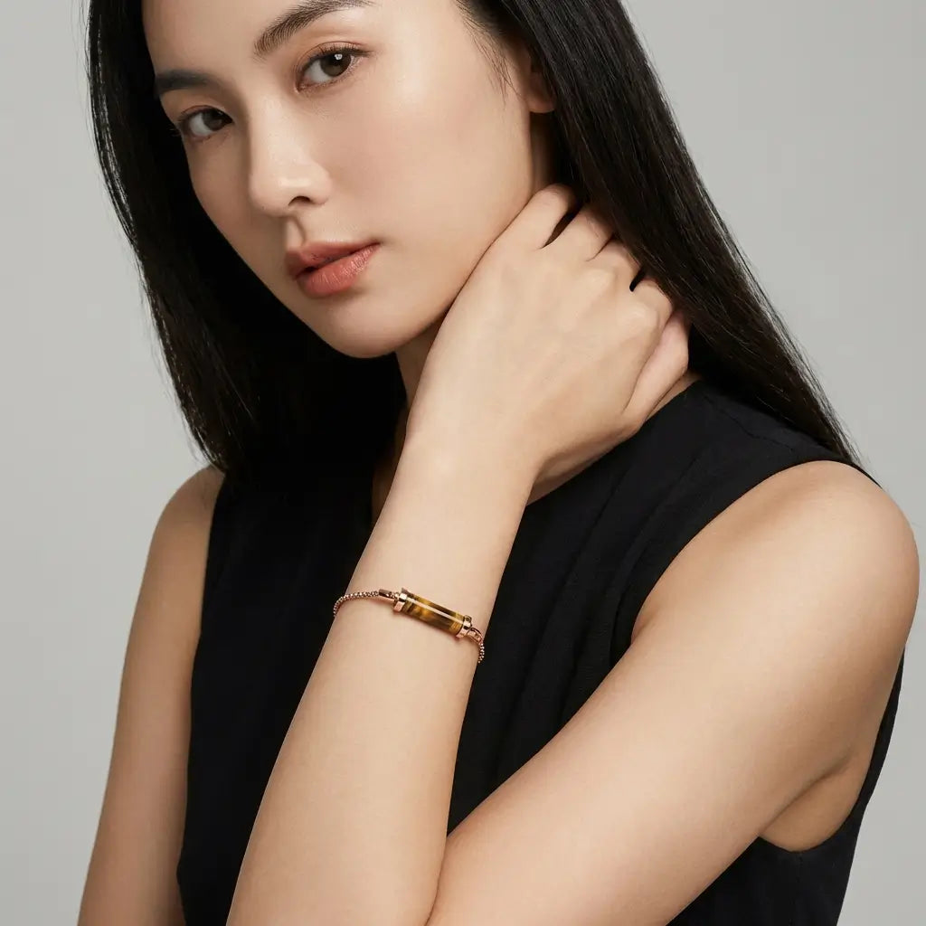 无论是镶嵌在简约的手镯、醒目的戒指还是具有保护作用的吊坠上,佩戴虎眼石都如同随身携带一小片阳光和力量。