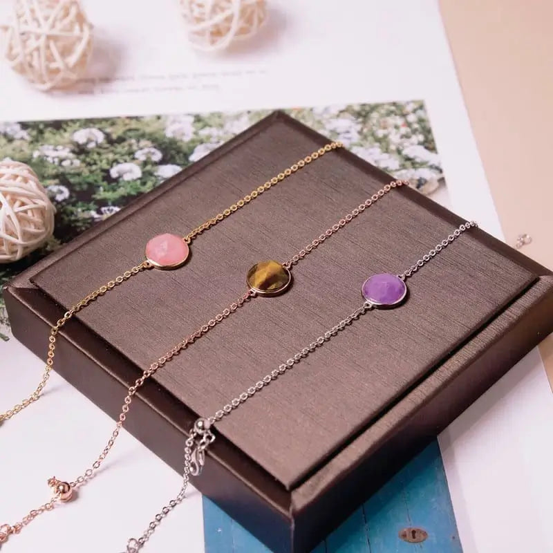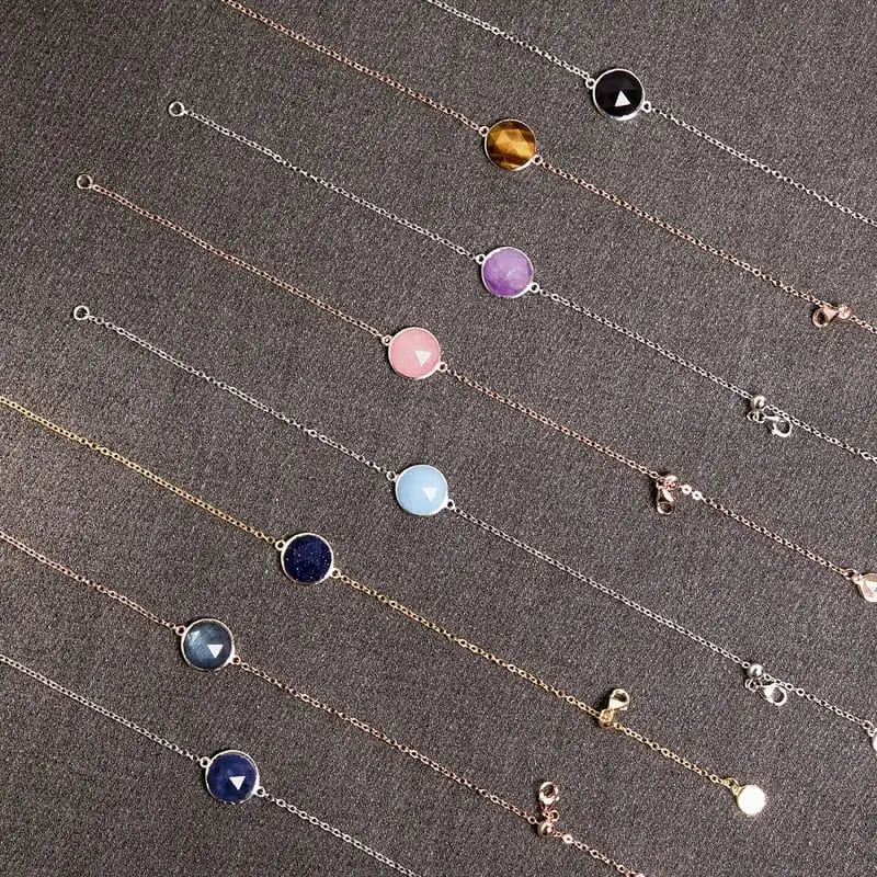 這款精美的手鏈上的圓形寶石尺寸為10mm x 10mm,並經過玫瑰切割,以彰顯其獨特的色調和自然的變化。 手鏈長19厘米,鏈尾上的滑動珠使您可以調整其長度,以貼身佩戴。